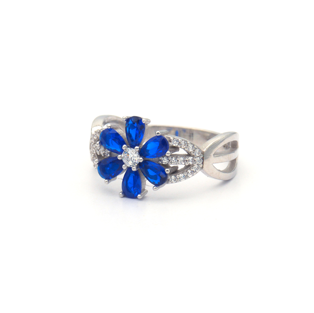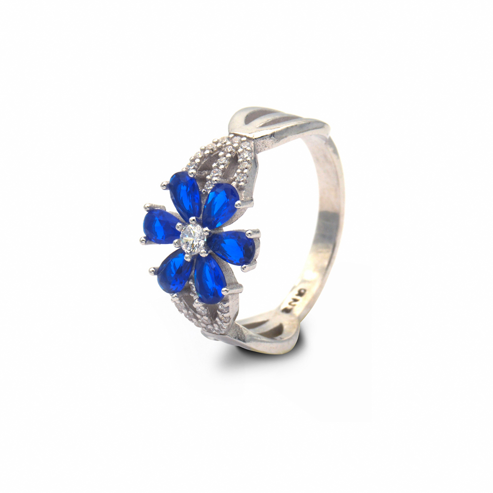 Ürün Kodu: MVC-468545 Mavi Çiçek Taşlı Gümüş Yüzük