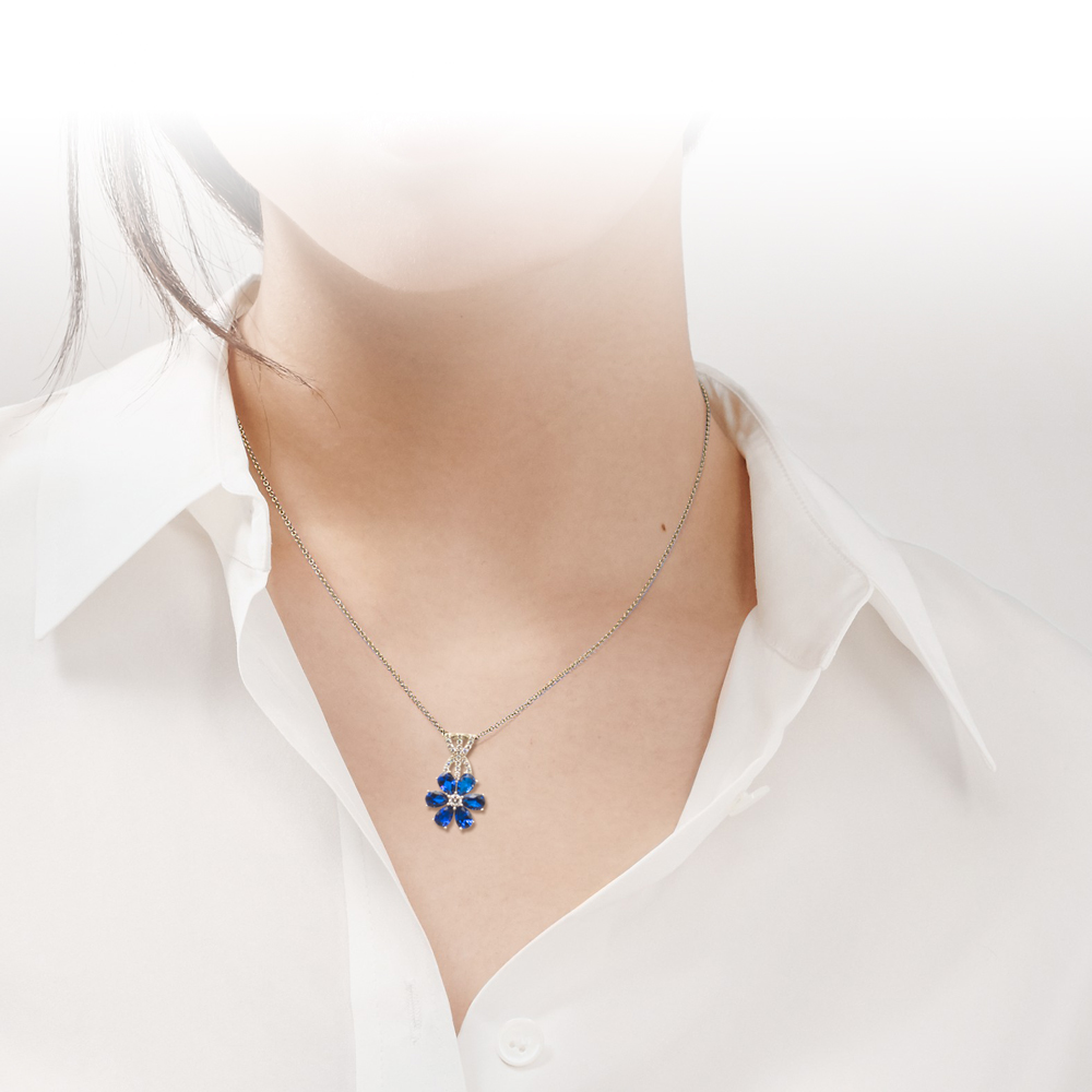 Ürün Kodu: YN-549287 Safir Rengi Çiçek Kesim Zirkon Taşlı 925 Ayar Gümüş Kolye